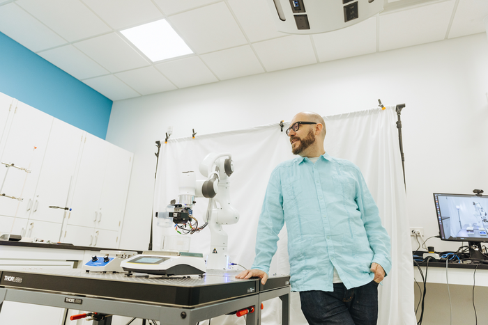 Business AnnouncementIMAGE: ALÁN ASPURU-GUZIK POSING WITH A ROBOTIC ARM IN THE MATTER LAB. view more