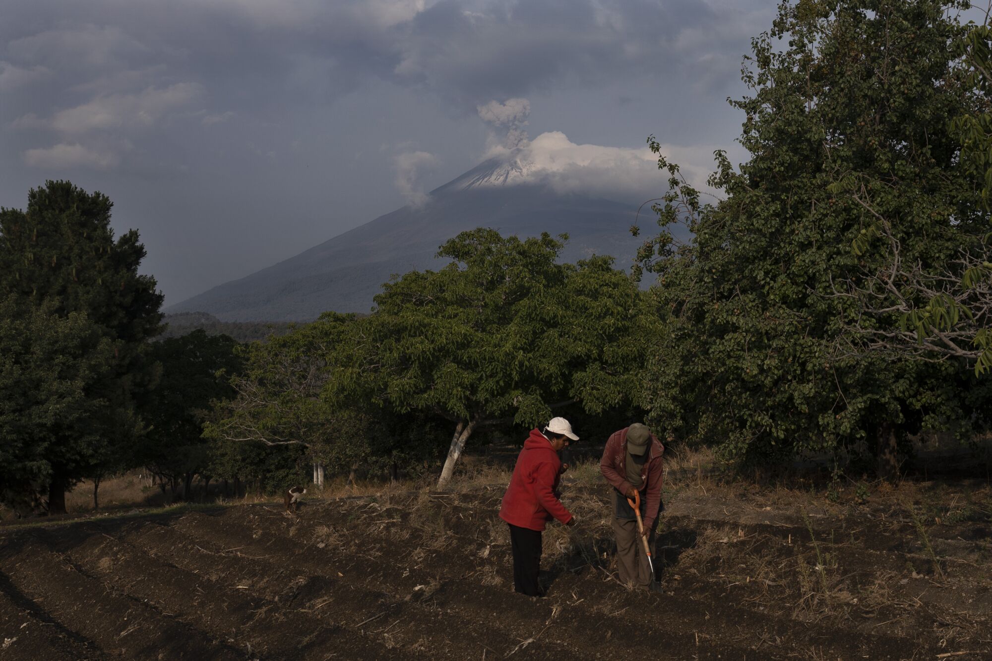 Villagers in Santiago Xalitzintla, Mexico, plant corn in the shadow of the Popocatépetl volcano.