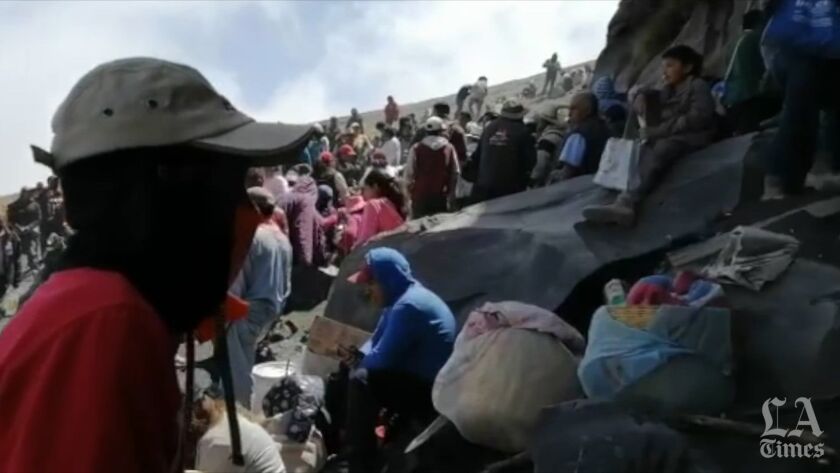 Residents of Santiago Xalitzintla, Mexico, a village at the base of the Popocatépetl volcano, trek up to a cave near its gaping crater to make a peace offering.