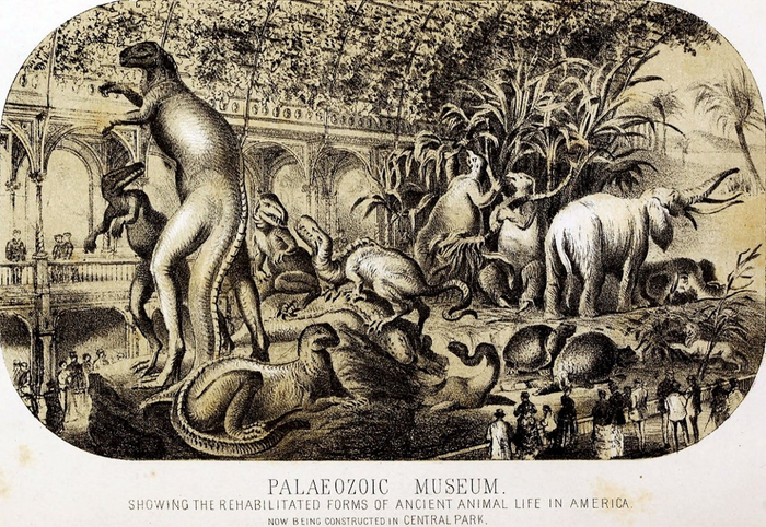 As the city grew, the iconic Central Park was taking shape. More than just a green space, it was to have other attractions, including the Paleozoic Museum. British sculptor Benjamin Waterhouse Hawkins, who had created the Crystal Palace Dinosaurs, the life-size models of prehistoric creatures in London – had travelled to America and was commissioned to build American versions of the models for the Paleozoic museum.