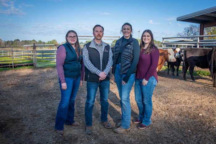 IMAGE: FROM LEFT, ZULLY CONTRERAS-CORREA, POSTDOCTORAL ASSOCIATE; CALEB LEMLEY, ASSOCIATE PROFESSOR; AND DOCTORAL STUDENTS RILEY MESSMAN AND REBECCA SWANSON, ARE RESEARCHING BENEFITS OF THE SUPPLEMENT MELATONIN FOR CATTLE HEALTH. view more