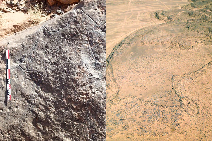 Although human constructions have modified natural spaces for millennia, few plans or maps predate the period of the literate civilizations of Mesopotamia and Ancient Egypt. Researchers from the French research organisation "Centre national de la recherche scientifique" (CNRS), together with Prof. Dr. Frank Preusser from the University of Freiburg, have now been able to identify engravings in Jordan and Saudi Arabia as the oldest known true-to-scale construction plans in human history. The 8,000 to 9,000-year-old engravings depict so-called desert dragons – kilometre long prehistoric megastructures used to trap animals. "Conclusions can be drawn from the findings about the people of the time. The ability to transfer a large space to a small, two-dimensional plan represents a milestone in intelligent behaviour," explains Preusser. The results, which were published in mid-May in the scientific journal PLOS ONE, should help to understand how desert dragons were conceived and built.