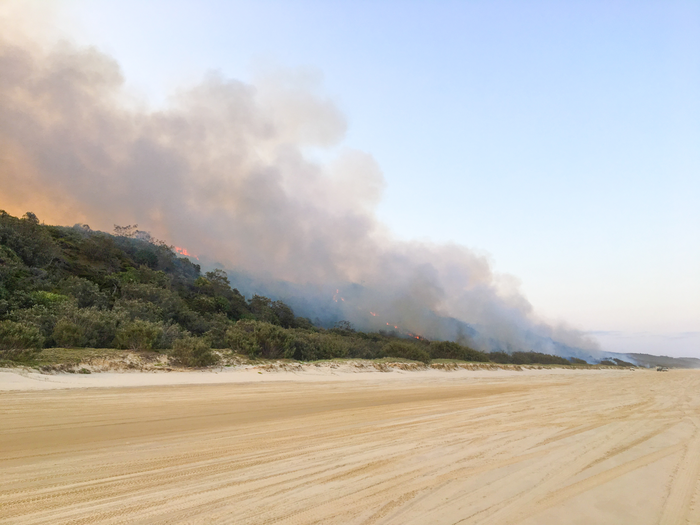 IMAGE: FRASER ISLAND FIRE ON K’GARI IN 2020 WHICH BURNED OVER 50% OF THE ISLAND. view more
