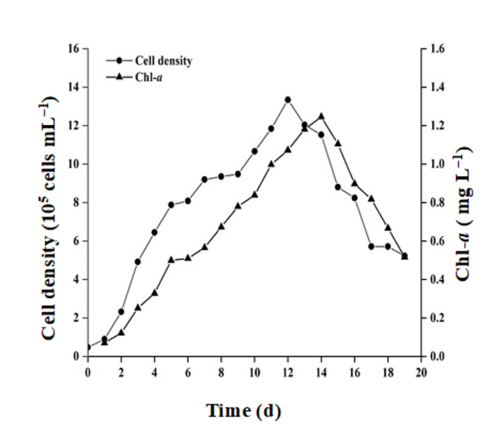 IMAGE: THE GROWTH CURVES BASED ON THE CELL DENSITY AND CHL-A CONTENT WERE SIMILAR. FIGURE CREDIT: BO CHEN. view more