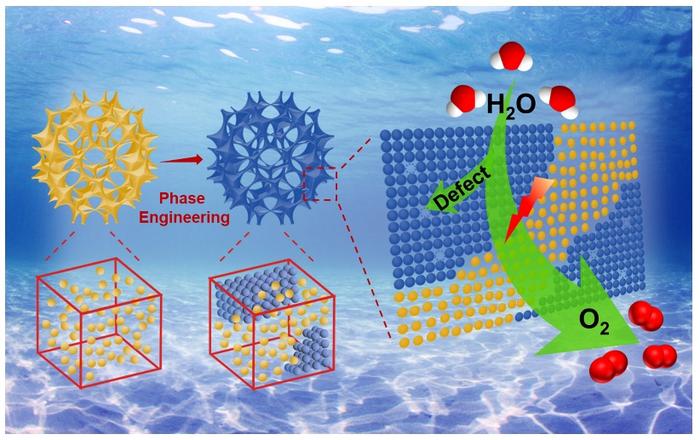 IMAGE: RESEARCHERS AFFILIATED WITH THE BEIJING INSTITUTE OF TECHNOLOGY RATIONALLY DESIGNED AN ELECTROCATALYST WITH BOTH AMORPHOUS AND CRYSTALLINE PHASES, AS WELL AS ABUNDANT DEFECTS, TO MORE EFFICIENTLY SPLIT WATER AND PRODUCE CLEAN-BURNING HYDROGEN GAS. view more
