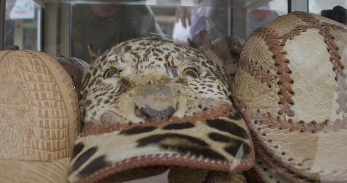 Jaguar fangs and products made with their skins are sold in markets like El Campesino. Despite being illegal in the country to kill and sell jaguars and their by-products. Prisoners at the Mocoví prison are creating wallets, hats and belts with illegal jaguar skins inside the institution. These products are then sold in markets like El Campesino. Photos taken at El Campesino Market, June 2022.