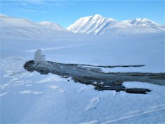 Hodson’s field work shows that, during the Arctic winter, this pingo is probably the only source of methane in the immediate area, its chimney enabling the gas to escape from the depths of the ice before methane-consuming microbes can catch it. Annually, tens of kilograms of methane and more than a ton of carbon dioxide will escape from this pingo alone - one of more than 10,000 scattered across the Arctic, in addition to its other methane-producing hotspots.