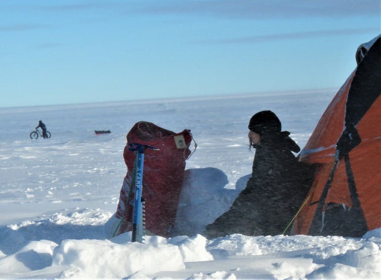 Instead, we are using a stapler-sized nanopore sequencer hooked up to the USB port of a winterised laptop. Outside the tent, it is –20°C – but the DNA sequencer must run at body temperature. The only sustainable source of warmth is body heat, so I have snuggled up with the sequencer in my sleeping bag every night and in my clothes all day.