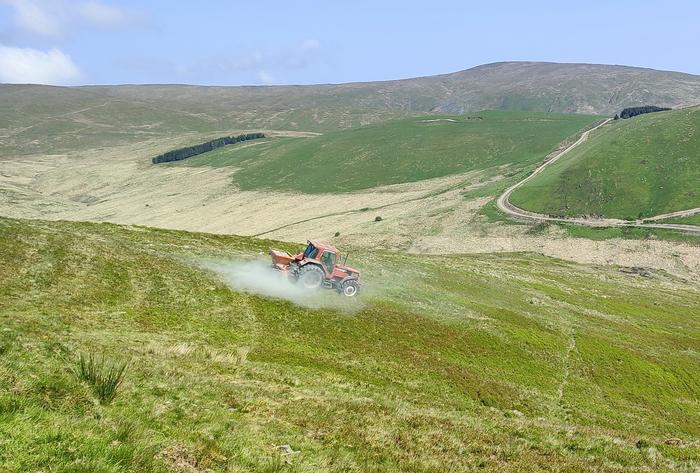 Business AnnouncementIMAGE: A TRACTOR SPREADS ROCK DUST ON UPLAND GRASSLAND IN PLYLIMON, MID-WALES. view more