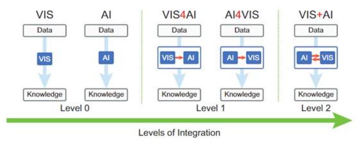 IMAGE: THREE LEVELS OF INTEGRATION OF VIS AND AI IN DATA ANALYSIS view more