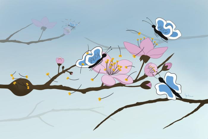 IMAGE: WHEN YOU LEARN, SYNAPTIC COMPARTMENTS ON YOUR NEURONS GROW AND STRENGTHEN, REPRESENTED ABSTRACTLY AS BUDS OPENING INTO FULL BLOOM. NEW RESEARCH HAS DISCOVERED THAT DURING THIS PROCESS, SIGNALING ENZYMES NAMED PKCD, DRAWN ABOVE AS FLUTTERING BUTTERFLIES, ARE ACTIVATED TO SUPPORT THE STRENGTHENING AND GROWTH OF SYNAPSES WHILE ALSO SENDING SIGNALS THAT SPREAD, LIKE THE POLLEN FROM THE FLOWERS, FROM THE SYNAPSES TO THE NUCLEUS OF THE NEURON TO REGULATE CELL WIDE GENE EXPRESSION. IMAGE CREDIT: HELENA PINHEIRO view more