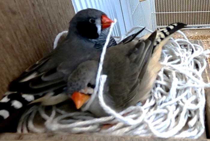 IMAGE: A ZEBRA FINCH (TAENIOPYGIA GUTTATA) HANDLING NEST MATERIAL view more