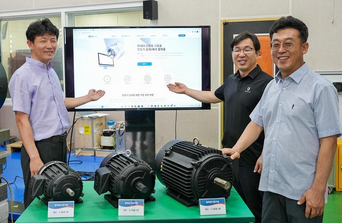 Business AnnouncementIMAGE: KERI'S RESEARCH TEAM (FROM LEFT, DRS. PILWAN HAN, DONGJUN KIM, AND JAEHAK CHOI) HAS DEVELOPED A SUPER-PREMIUM (IE4) CLASS INDUSTRIAL MOTOR AND ESTABLISHED AN OPEN PLATFORM FOR TECHNOLOGY DIFFUSION. view more