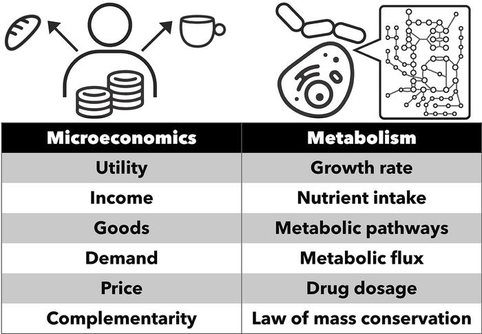 IMAGE: THE RESEARCHERS IDENTIFIED SEVERAL CORRESPONDING FEATURES BETWEEN MICROECONOMICS AND METABOLIC SYSTEMS. view more