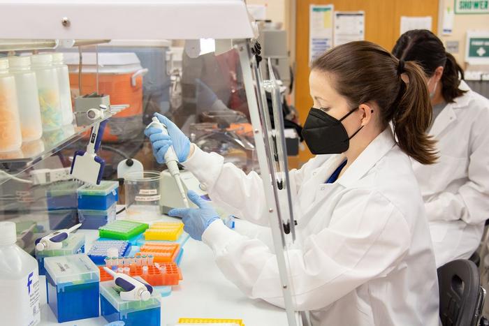 IMAGE: EMILY GARNER, ASSISTANT PROFESSOR OF CIVIL AND ENVIRONMENTAL ENGINEERING AT WEST VIRGINIA UNIVERSITY, SHOWS STUDENTS HOW TO PREPARE WATER SAMPLES FOR ANALYSIS. THE SAMPLES CONSIST OF DNA EXTRACTED FROM MICROORGANISMS FOUND IN DRINKING WATER DISTRIBUTION SYSTEM SAMPLES COLLECTED. IN THE BACKGROUND IS RECENT UNIVERSITY GRADUATE MADISON HADDIX. view more