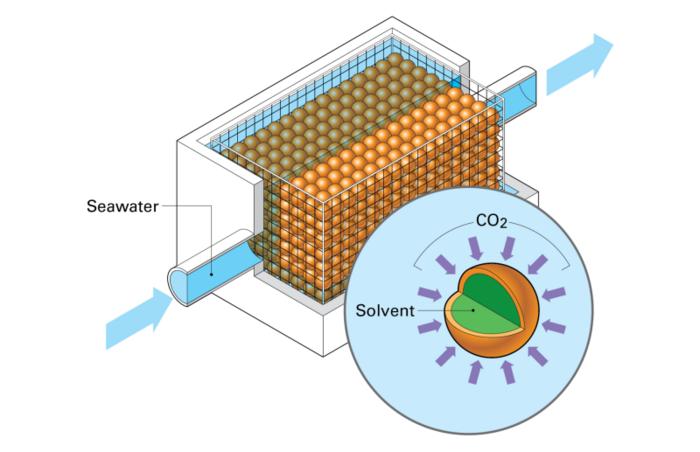 “Membrane contactors are just what they sound like,” Hornbostel said. “They’re membranes that bring two fluids into contact with each other. In this case, we’re bringing together ocean water on one side and a solvent on the other.”
