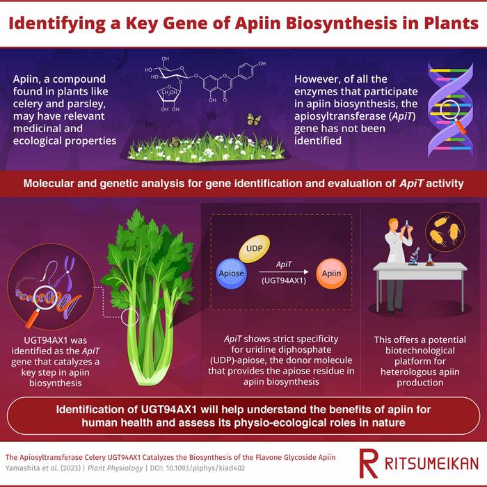 In a recent study published on 11 July 2023 in the journal Plant Physiology, a research team led by Professor Takeshi Ishimizu of Ritsumeikan University, Japan, set out to address this knowledge gap. They conducted a series of experiments to identify and analyze the elusive ApiT of celery (Apium graveolens). The results of this study will help us develop efficient ways to biosynthesize apiin. “This is the first identification of ApiT in plants,” highlights Prof. Ishimizu “Our findings will pave the way to biotechnological platforms for producing apiin in bacterial organisms such as Escherichia coli.”