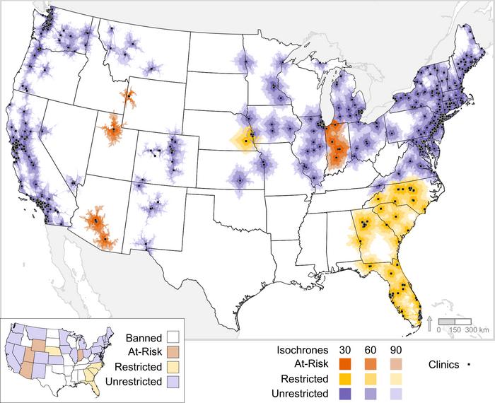 CREDIT: SOURCE: A GEOSPATIAL ANALYSIS OF ABORTION ACCESS IN THE UNITED STATES AFTER THE REVERSAL OF ROE V WADE, OBSTETRICS & GYNECOLOGY: JULY 26, 2023