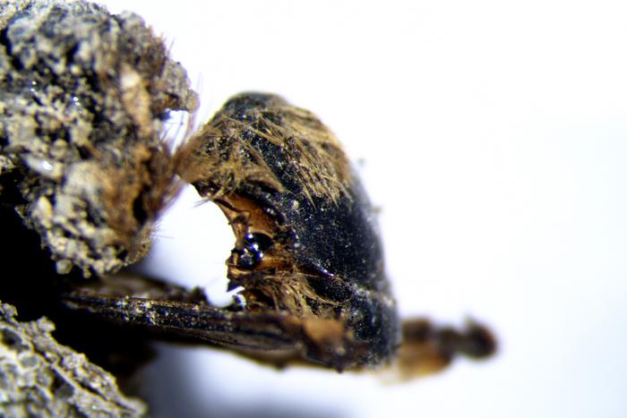 IMAGE: IMAGE TAKEN UNDER BINOCULAR LENS, CORRESPONDING TO SPECIMEN DETAILS OF THE DORSUM. THIS SPECIMEN WAS EXTRACTED FROM THE SEDIMENT FILLING A COCOON. view more