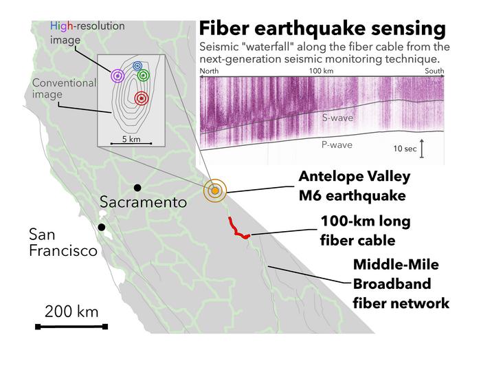 In this new study, the team examined the light signatures traveling through a stretch of fiber optic cable located in the Eastern Sierra Nevada during the 2021 Antelope Valley magnitude 6 earthquake. The section of cable was equivalent to 10,000 seismometers and was able to discover that the M6 was made up of a sequence of four smaller ruptures. These so-called "sub-events," like mini earthquakes, could not be detected by a conventional seismic network.