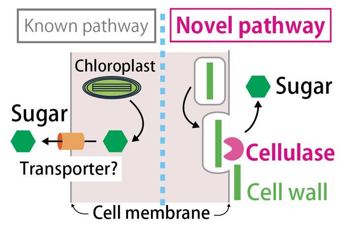 Researchers have identified a new pathway by which sugar is released by symbiotic algae. This pathway involves the largely overlooked cell wall, showing that this structure not only protects the cell but plays an important role in symbiosis and carbon circulation in the ocean.