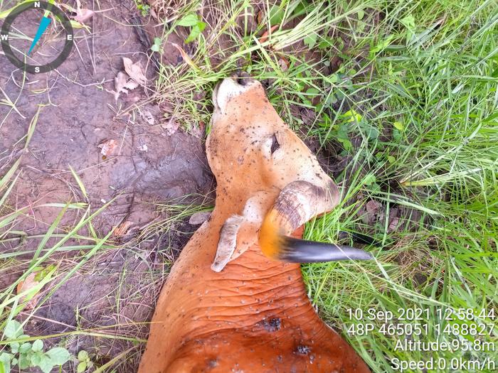 Peer-Reviewed PublicationIMAGE: A DEAD BANTENG WITH LUMPY SKIN DISEASE. THE ANIMAL WAS ALSO BADLY INJURED IN A SNARE. view more