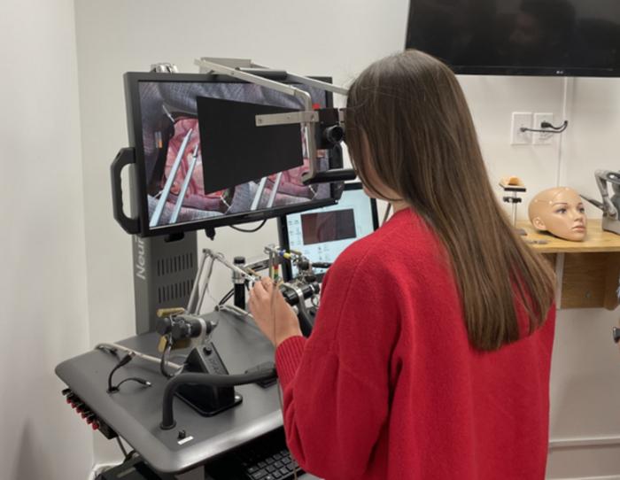 IMAGE: A TRAINEE USING A VIRTUAL REALITY NEUROSURGICAL SIMULATOR view more