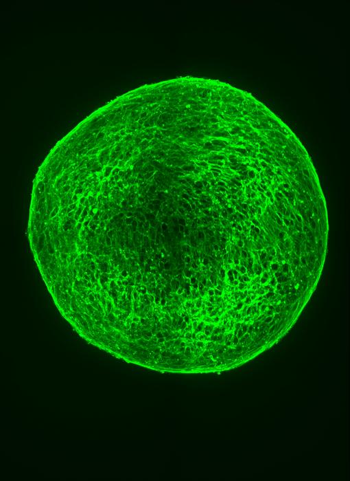 IMAGE: A BALL OF NEUROBLASTOMA CELLS FORMING MATURE NERVES AFTER DRUG TREATMENT view more