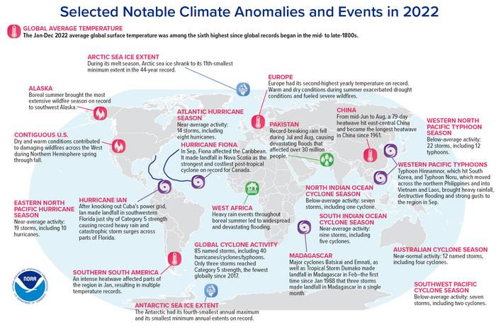 IMAGE: WORLD MAP SHOWING LOCATIONS OF SIGNIFICANT CLIMATE ANOMALIES AND EVENTS IN 2022. view more