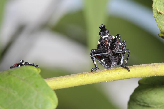IMAGE: SPOTTED LANTERNFLIES HAVE PIERCING/SUCKING MOUTHPARTS THAT THEY USE TO SUCK THE PHLOEM SAP OUT OF PLANTS. view more