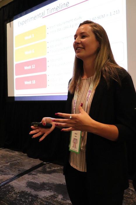 IMAGE: ALYSSA LYONS, A DOCTORAL CANDIDATE IN THE SCHOOL OF ANIMALS SCIENCES, PRESENTS AT THE ANNUAL MEETING OF THE POULTRY SCIENCE ASSOCIATION IN PHILADELPHIA. LYONS IS THE LEAD AUTHOR OF A RESEARCH ARTICLE RECENTLY PUBLISHED IN THE JOURNAL OF APPLIED POULTRY RESEARCH. view more