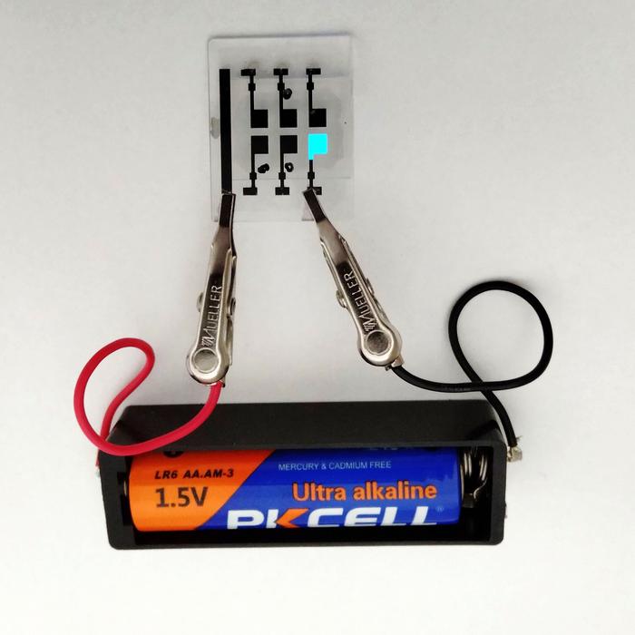 Peer-Reviewed PublicationIMAGE: LIGHTING UP A BLUE ORGANIC LED WITH A SINGLE AA BATTERY. view more