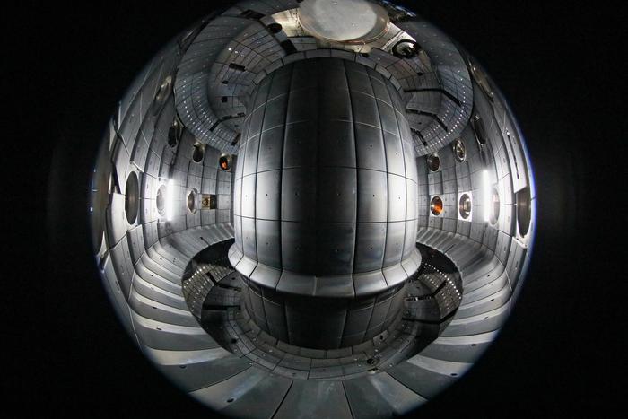 IMAGE: INSIDE THE CHAMBER OF EPFL'S TCV (VARIABLE-CONFIGURATION TOKAMAK) view more