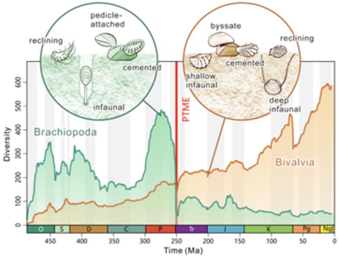 “We found that in fact both groups shared similar trends in diversification dynamics right through the crisis time,” said Professor Michael Benton from Bristol’s School of Earth Sciences. “This means that they weren’t really competing or preying on each other, but more probably both responding to similar external drivers such as sea temperature and short-lived crises. But the bivalves eventually prevailed and the brachiopods retreated to deeper waters, where they still occur, but in reduced numbers.”
