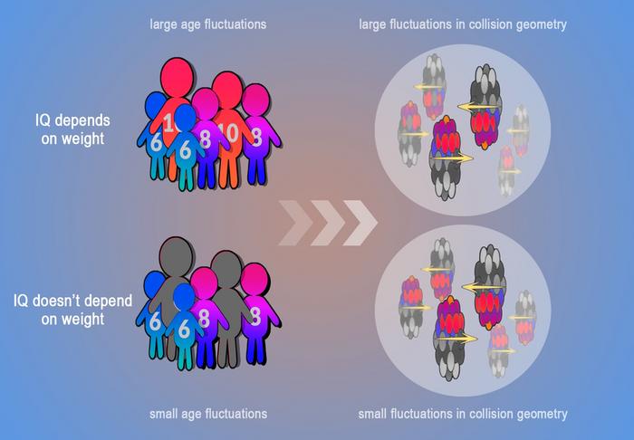 IMAGE: CHILDREN'S INTELLIGENCE MAY APPEAR TO BE STATISTICALLY RELATED TO THEIR WEIGHT BECAUSE THE RELATIONSHIP IS SENSITIVE TO AGE FLUCTUATIONS WITHIN THE STUDY GROUP. A SIMILAR PHENOMENON OCCURS IN THE CASE OF THE CORRELATION VARIABLE SIGMA AND THE CENTRALITY OF HEAVY ION COLLISIONS IN THE LHC ACCELERATOR. view more