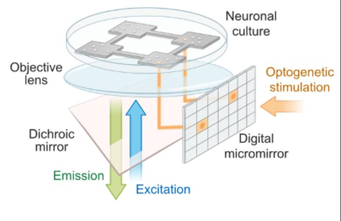 To study this, the researchers guided cortical neurons to form a network containing multiple sub-groups, or modules. The lab-grown neurons were engineered to express light-sensitive proteins so they could be stimulated using a specific wavelength of light.
