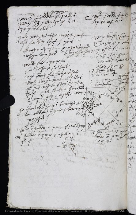 A page from the casebooks of Richard Napier that includes the case of Mrs Pedder the younger of Potters Perry, who suspects a female healer of witchcraft. (CASE46520). April 30. Thursday 11.30pm. 1618.