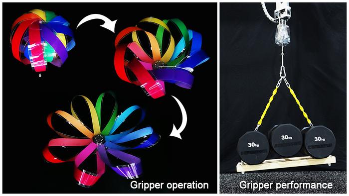 To increase the loading capacity of the soft robot gripper, the research team applied a new structure inspired by textiles, as opposed to the conventional method of developing new materials or reinforcing the structure. The weaving technique they focused on involves tightly intertwining individual threads to create a strong fabric, which can reliably support heavy objects and has been used for centuries in clothing, bags, and industrial textiles. The team used thin PET plastic The grippers were designed to allow the strips to intertwine and unwind into a woven structure.