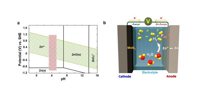 Until now, researchers have often tried to evade this issue by installing a surface protection layer that minimizes the contact area between the metal anode and the electrolyte. However, the corrosion of the metal anode and accompanying decomposition of water in the electrolyte is inevitable in most cases, and incessant accumulation of hydrogen gas can cause a potential detonation in long-term operation.