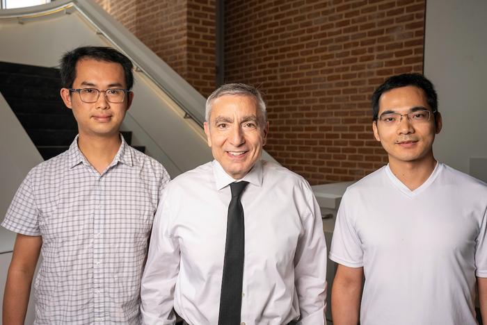 CAPTION: Yi Cheng (from left), James Tour and Bing Deng (Photo by Gustavo Raskosky/Rice University)