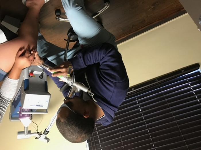 DR. DAMON H. CLARK PERFORMS TATTOO REMOVAL ON A CLIENT.