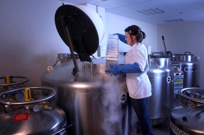 Tissue samples in cryogenic storage, kept cold with liquid nitrogren, at the Field Museum.