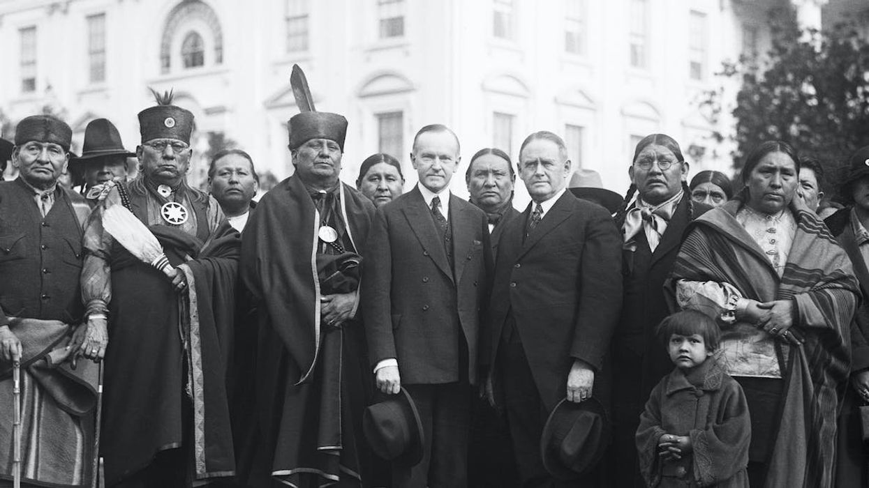 An Osage delegation with President Calvin Coolidge at the White House on Jan. 20, 1924. Bettman via Getty Images
