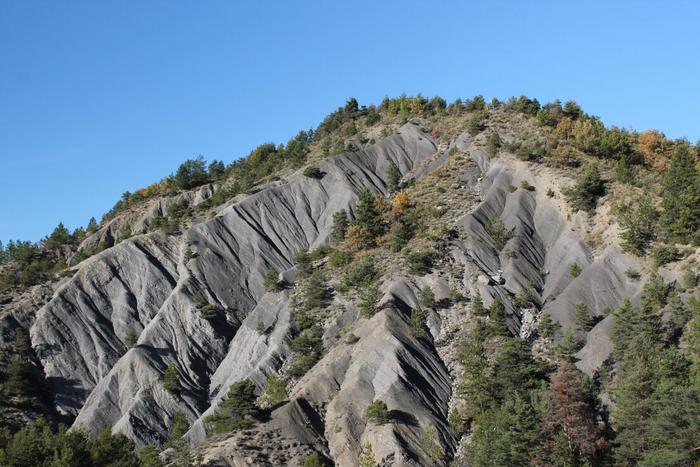 High erosion in southern France exposes these sedimentary rocks to weathering, releasing CO2 as the ancient organic carbon breaks down. Image credit: Robert Hilton