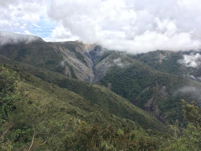Landslides in the high Andes of Peru, exposing rocks full of organic matter to weathering which can release CO2. Image credit: Robert Hilton.