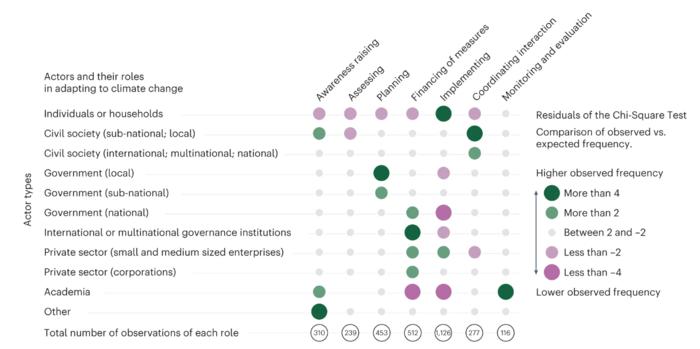 A new study provides the first global analysis of actors engaged in climate adaptation and the roles they are playing. For the publication, an international team of scientists assessed more than 1,400 scientific studies on the subject of climate change adaptation. The results show that there are, across the globe, many gaps in distribution of roles and responsibilities for adaptation. Above all, there is a lack of adaptation that profoundly transforms societies, infrastructure, and risk management in response to the massive impacts of climate change. Further, there is a lack of comprehensive collaborations between various state and non-state actors.