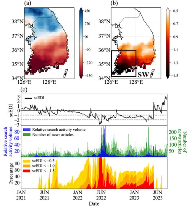 A research team led by Professor Jonghun Kam from the Division of Environmental Science and Engineering and Dr. Chang-Kyun Park who previously worked at the Institute of Environmental and Energy Technology at Pohang University of Science and Technology (POSTECH) has employed multi-model projections using the self-calibrating Effective Drought Index (scEDI) to predict drought and recommend the cumulative precipitation necessary for recovery, collaborating with Drs. Sangeun Lee (Korea Research Institute for Human Settlements) and Hyuncheol Yoon (National Disaster Management Research Institute). Their findings have been published in Environmental Research Letters, an international journal in the field of global environment.