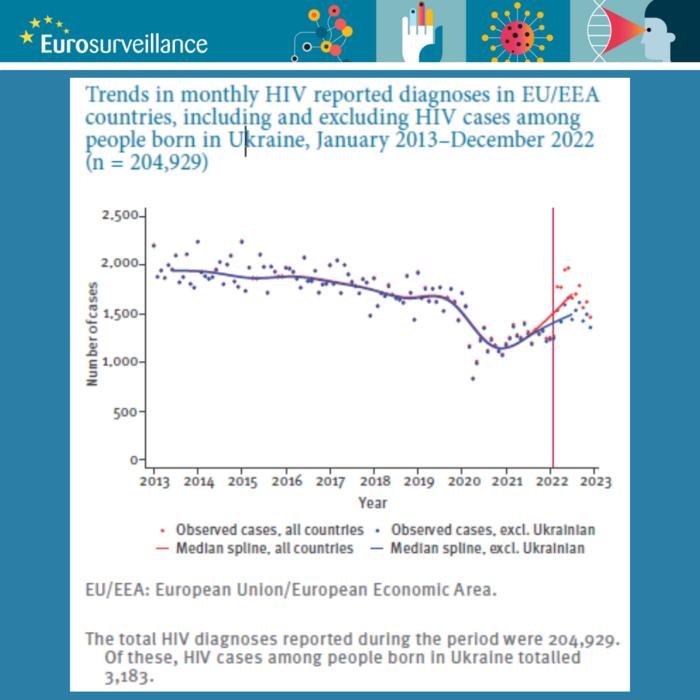 In the aftermath of Russia’s invasion of Ukraine in 2022, more than 4 million Ukrainians took refuge in countries of the European Union and European Economic Area (EU/EEA). In a rapid communication published in Eurosurveillance prior to World AIDS Day 2023 on 1 December, Reyes-Urueña et al. look at most recent surveillance data to assess potential impact on HIV case reporting in the region since the start of the war in Ukraine. [1]