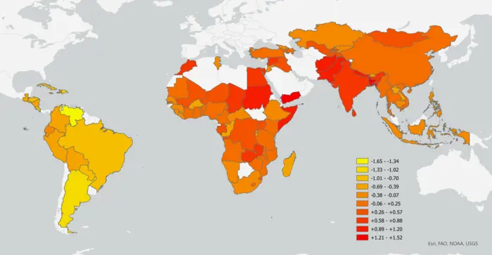 “The climate-agriculture-gender inequality hotspot risk index captures the convergence of climate hazards, exposure, and vulnerability because of gender inequalities faced by women in agri-food systems,” said Lecoutere. The team of researchers involved in the study calculated each country’s risk based on these indicators. “We plotted the resulting ‘hotness’ score for each LMIC country into a color-coded map, which makes it possible to compare and contrast risks in different countries.”