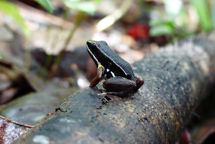 Poison frogs of the species Allobates femoralis are common in the rainforests in South America. Their highly poisonous relatives, such as frogs of the genus Phyllobates, were frequently used by indigenous people of Colombia to extract toxins by rubbing the skin onto arrowheads for the purposes of hunting and fighting. Allobates femoralis frogs are not poisonous. Like many other animal species, however, they have distinct personality traits. Both the males and females, for example, may be particularly bold, aggressive, or eager to explore. Poison frogs mate with several partners over the course of a reproductive period and their character traits have a considerable influence on the reproductive strategies employed by individual animals.